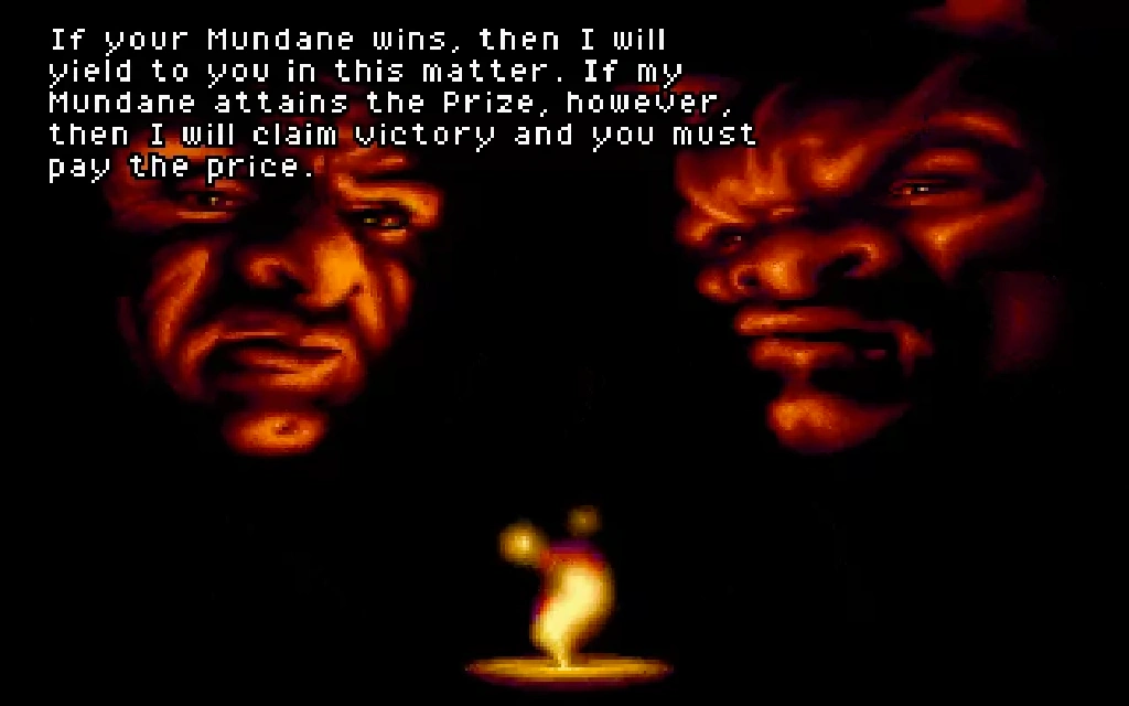 Nad hořící svíčkou se zjevují neznámé tváře. V slabém světle, které vychází z žlutavých plamínků, lze rozeznat pouze základní rysy obličeje. Patří Démonu Xanthu a Démonu Earthu, kteří mezi sebou uzavřou ďábelskou sázku. Pošlou do země Xanth dva soupeře, aby získali pro své barvy vítězný pohár. Démon Earth vsadil vše na dívku jménem Kim, Démon Xanth vkládá veškeré naděje právě do vás, malého chlapce hrdě nosící jméno Dug.