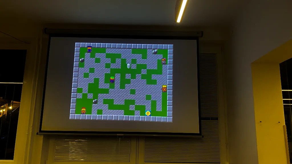 Všiml jsem si, že bratránek začal chaoticky blikat, je mi jasný, že chytl toho hnusnýho digitálního syfla. V tuto pokročilou hodinu už má v sobě dost piv a nedokáže si svůj mozek sesynchronizovat s nenadálým obráceným ovládáním. Proběhnu okolo něj, bez mrknutí oka nasázím několik bomb. Snaží se z jejich dosahu dostat. V jednu chvíli to vypadá, že mu to došlo a dostane se z toho, ale najednou se jeho postavička nelogicky otočí a běží k epicentru výbuchu jako zfetovanej mlynář. BUM! Zbývají poslední dva.